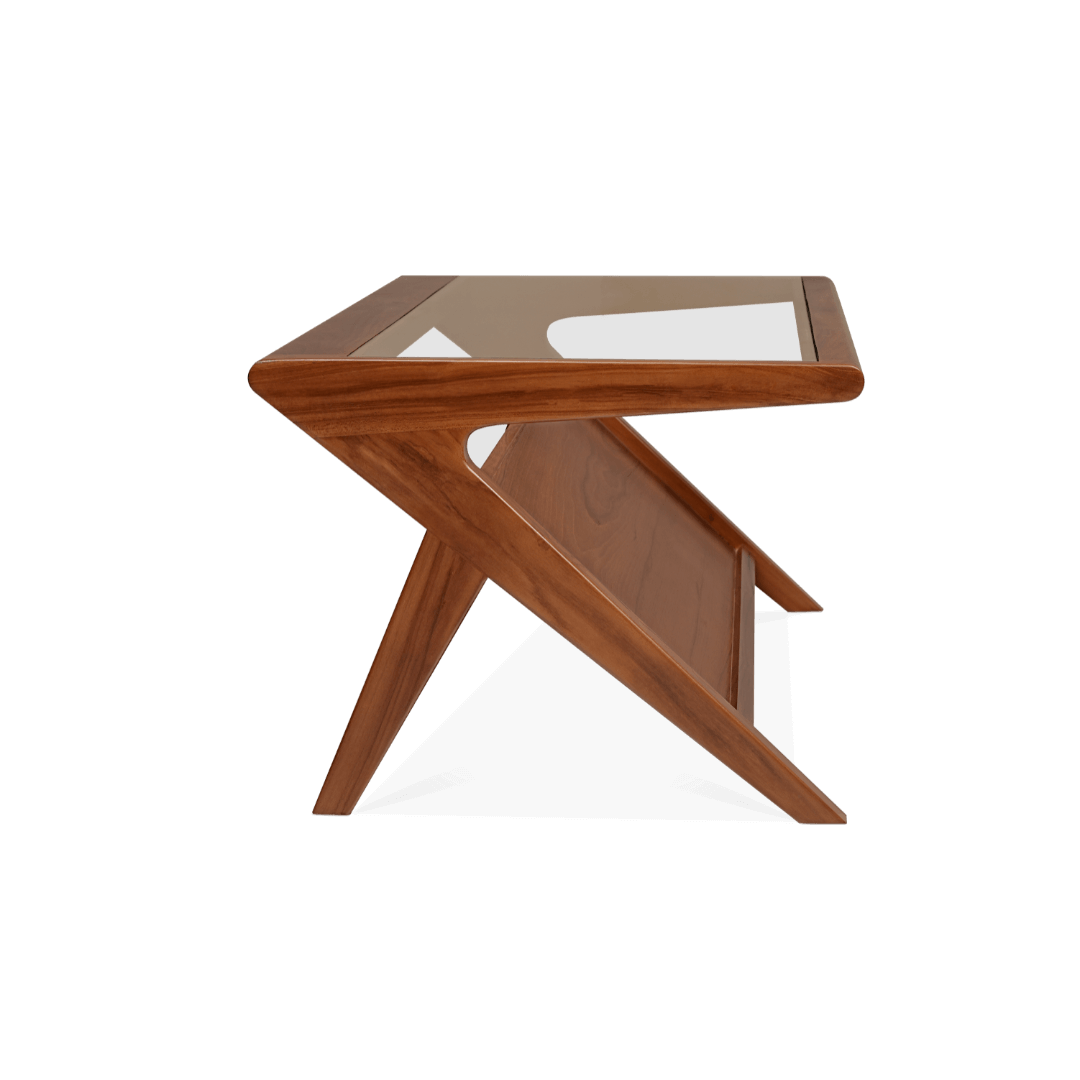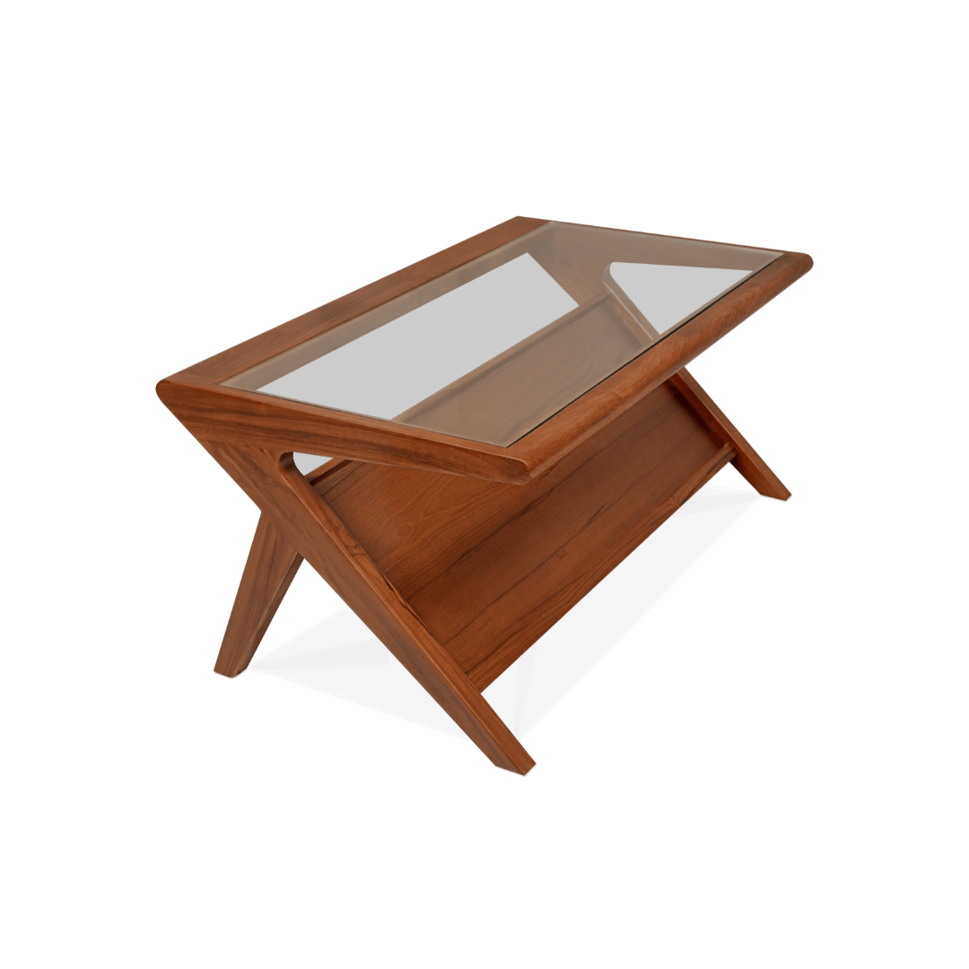 The Grasshopper Coffee Table stands out with its striking silhouette and timeless materiality. Designed in solid teak and crowned with a smooth glass top, this piece channels a sense of structure and sophistication. Its sharp geometry makes it a visual anchor in any contemporary or transitional living space. More than just a table — it’s a conversation starter.