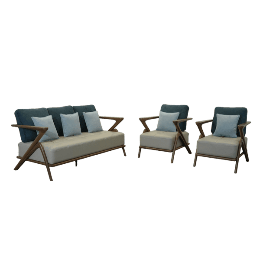 The Grasshopper 3+1+1 Sofa Set from Asharee brings architectural design and modern comfort into perfect balance. Its angular, hand-finished teakwood frame commands attention, while the soft fabric cushioning provides a cozy escape. Whether you’re curating a designer living room or upgrading your lounge setup, Grasshopper offers a bold statement with everyday usability.