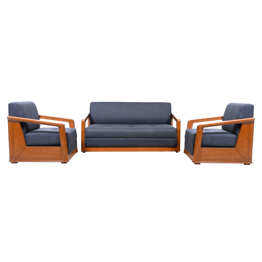 Bold. Balanced. Beautiful. The Lazzaro Sofa Set from Asharee is an elegant blend of commanding teak frames and plush comfort, designed to bring structure and sophistication to your living space.